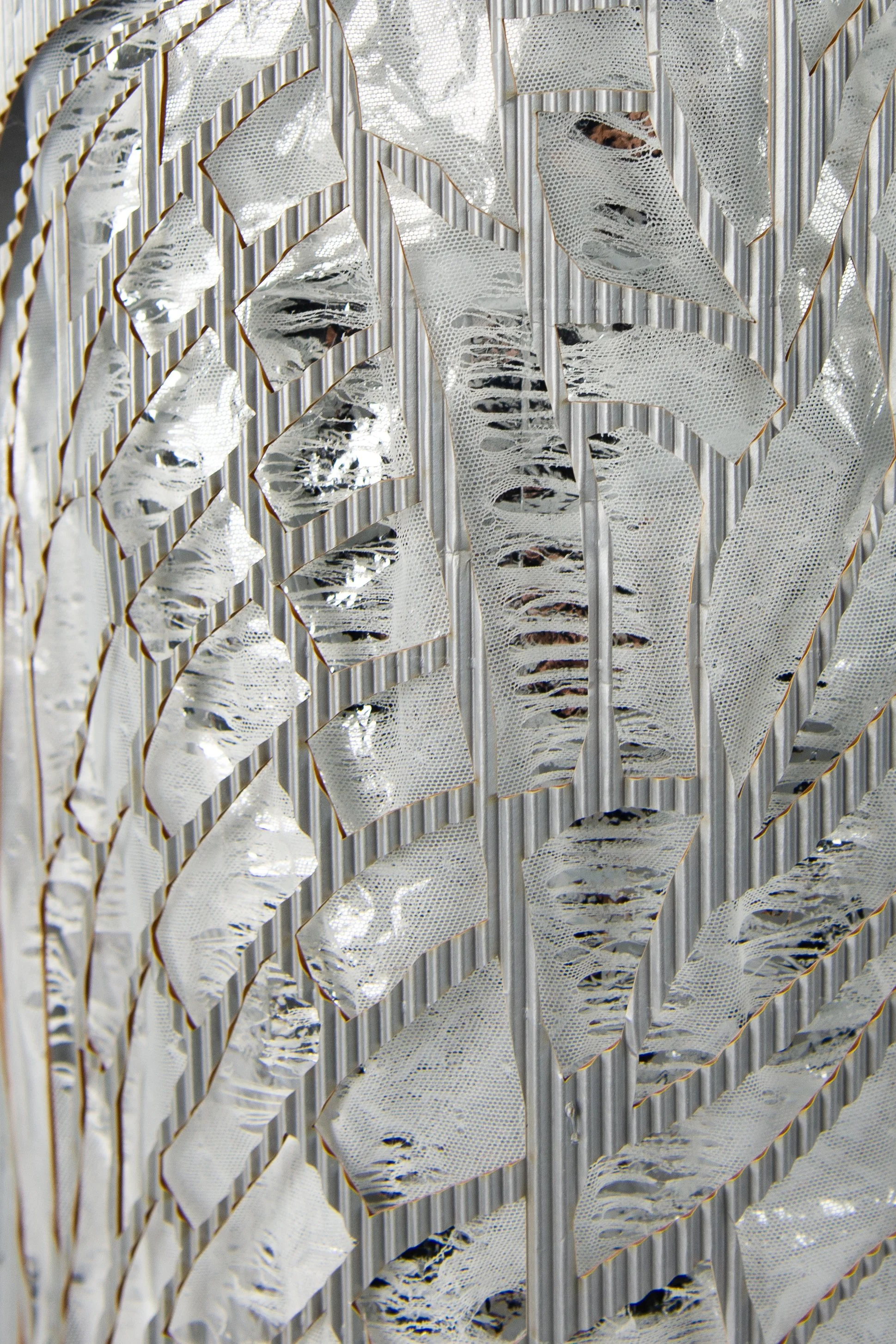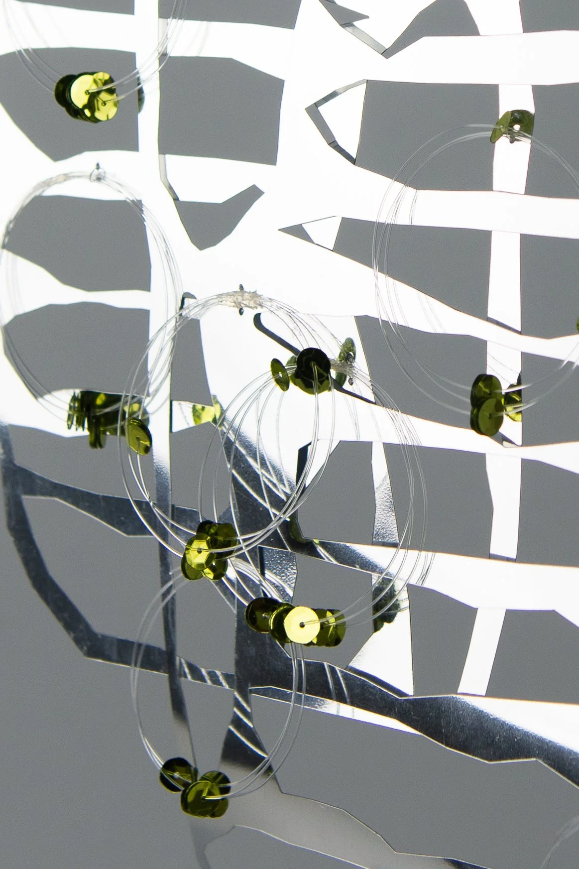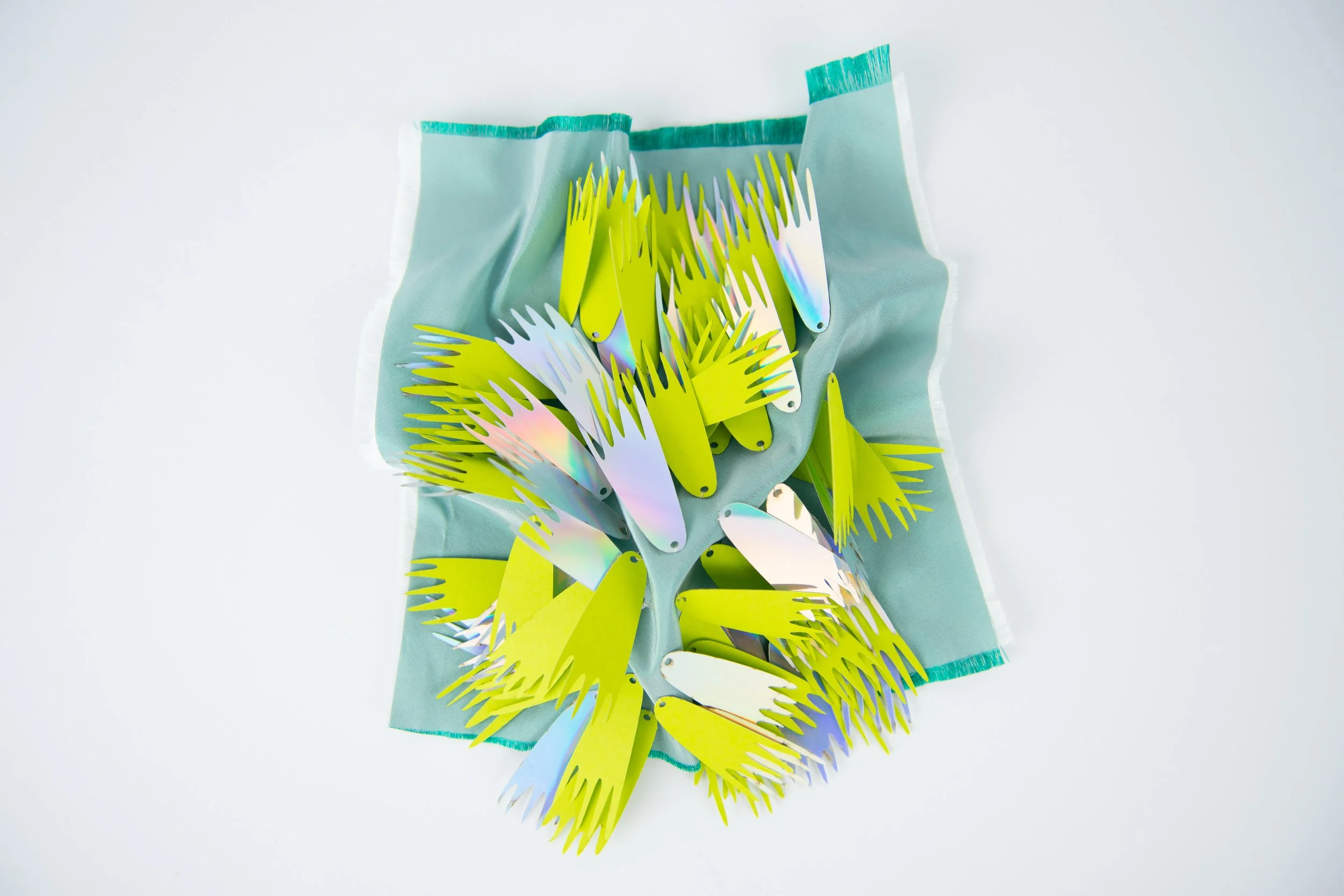 Inspired by this vision, Getting close on insects explores the hidden surface worlds of insects as a source of textile inspiration. By zooming in on patterns, textures, and structures rather than the insect as a whole, microscopic details are translated into textile expressions. Through material layering, research across analog and digital sources, and the creation of custom-made sequins, insect surfaces are adapted and reinterpreted rather than copied. The result is an experimental pattern collection that values intuition, material exploration, and process over predetermined outcomes.